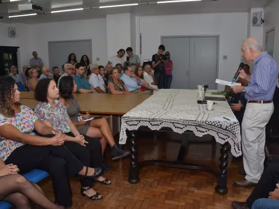 Fala do ex-diretor do Departamento de Comunicação Social da PUC-Rio, professor Cesar Romero, na cerimônia de posse.