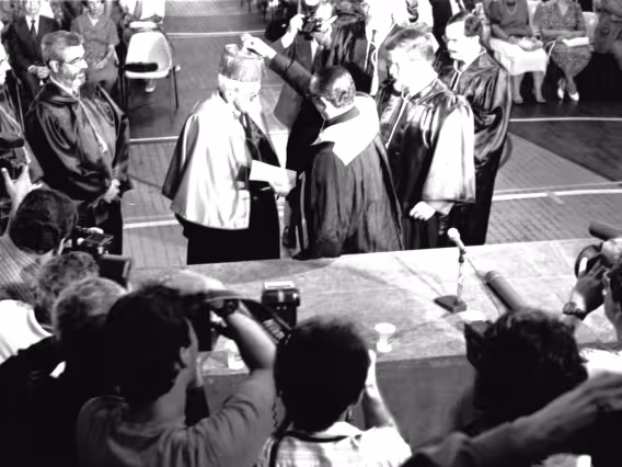 Cerimônia de posse do prof. Amarante como novo decano do CCBM (Centro de Ciências Biológicas e de Medicina) da PUC-Rio. Destacou em sua fala a intenção em criar os cursos de biologia, ortóptica e fisiatria.
