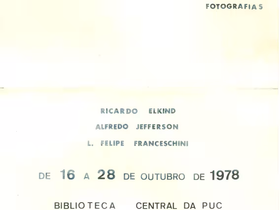 Convite para exposição de fotografias na Biblioteca Central da PUC-Rio, 20 a 30 de Outubro de 1978.