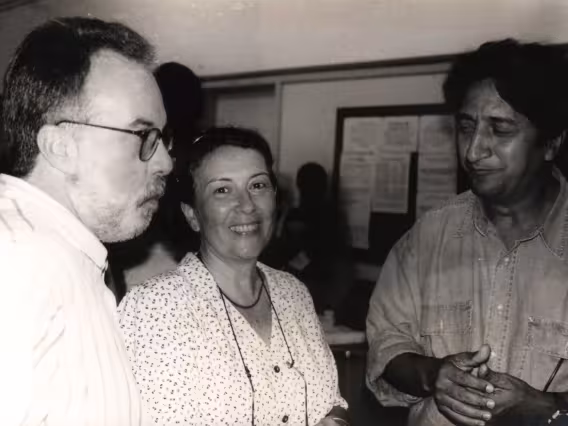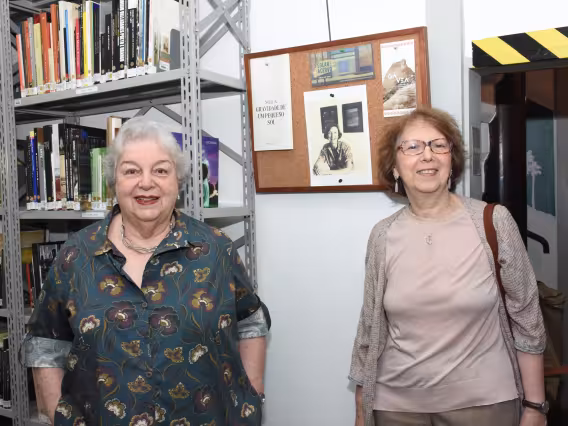As professoras Margarida de Souza Neves e Piedade Grinberg na inauguração da Biblioteca Irma Arestizábal.