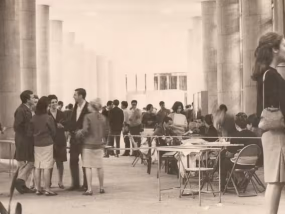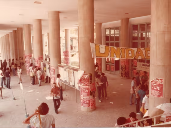 Sala do Departamento de História. No quadro de avisos, um mapa cultural do Rio de Janeiro.