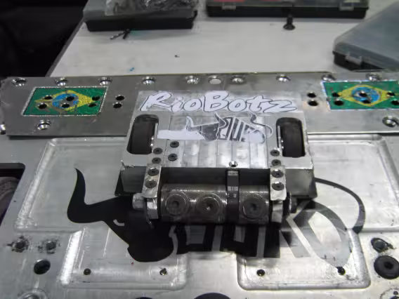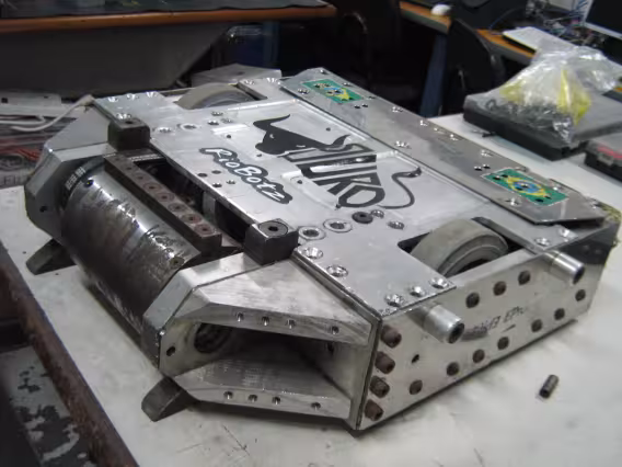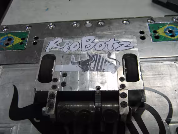 Robô Lacraia, com as medalhas da equipe Riobotz.