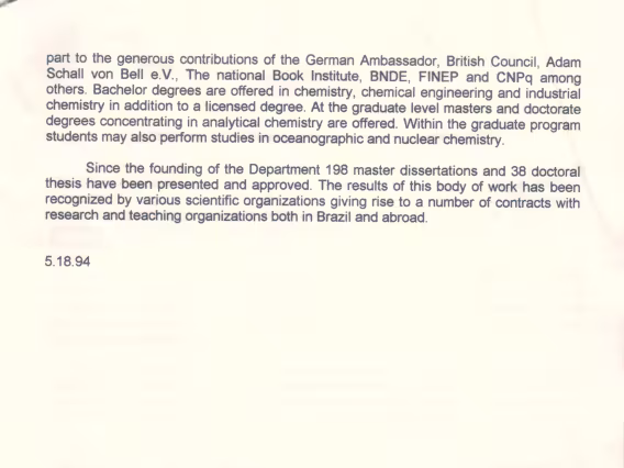Relatório com a relação das pesquisas desenvolvidas nos Departamentos de Engenharia Elétrica, Engenharia Mecânica, Física, Informática, Matemática e Química, no Centro de Estudos em Telecomunicações (CETUC) e no Laboratório Van de Graaff.
