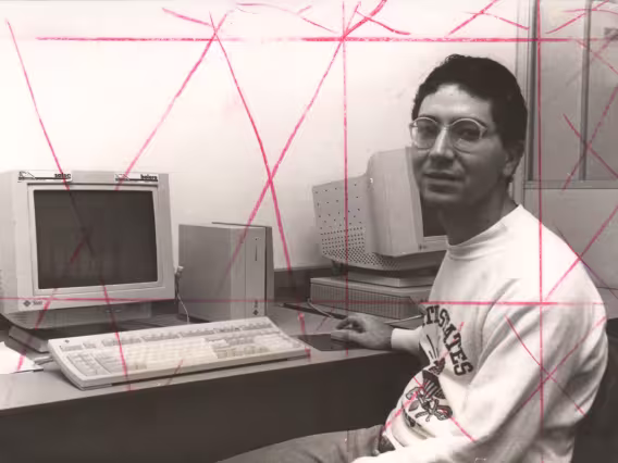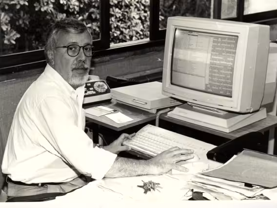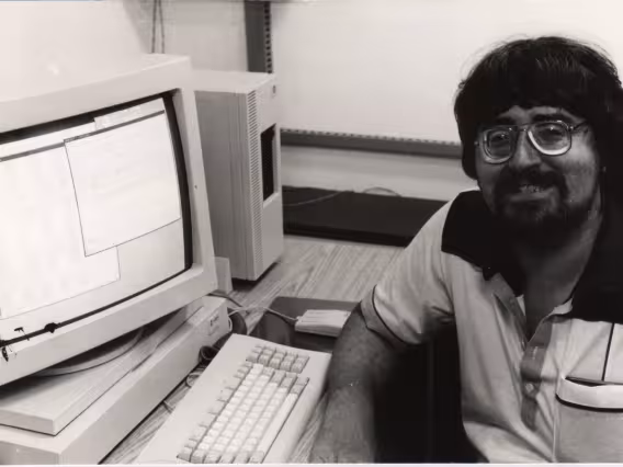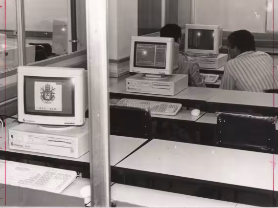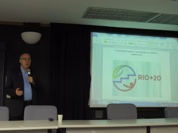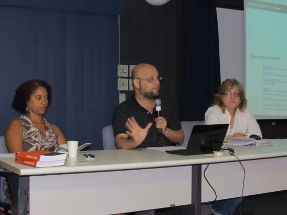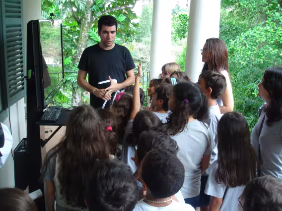 O monitor Eduardo Gonçalves com os alunos do Colégio Stockler.