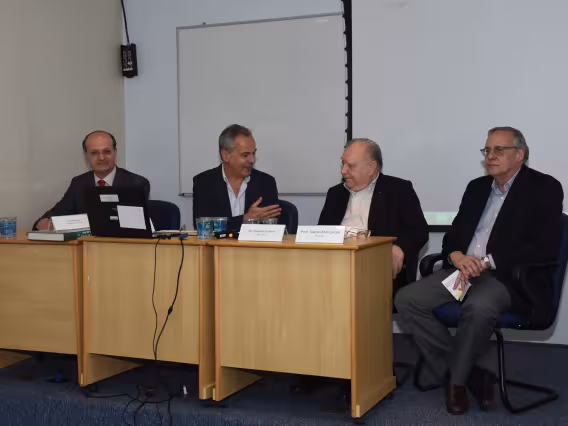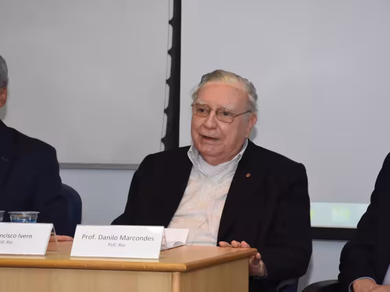 O Vice-reitor da PUC-Rio, Prof. Pe. Francisco Ivern S.J., na mesa de abertura do seminário.