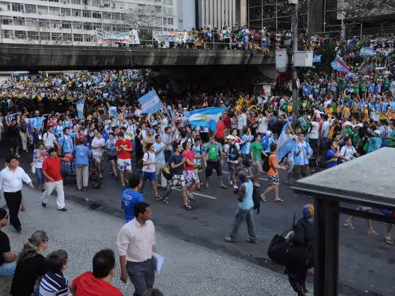 Policiais militares observam a movimentação de peregrinos.