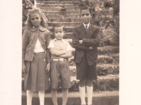 Beatriz, Luiz Paulo e João na escadaria do Solar.