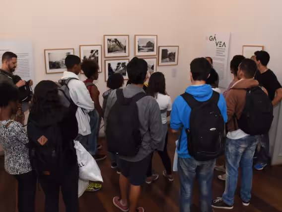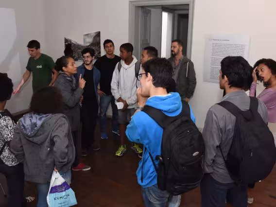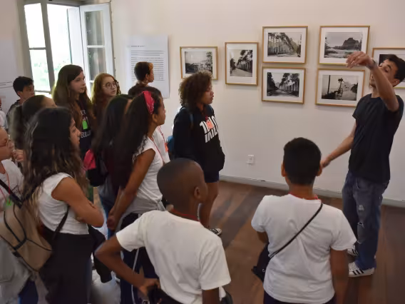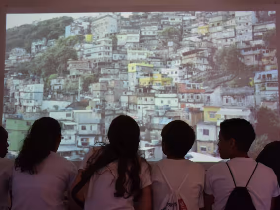 Visita de alunos da Escola Jockey Club Brasileiro, localizada na Gávea. Alguns alunos identificam a sua casa ou de conhecidos na foto da Rocinha.