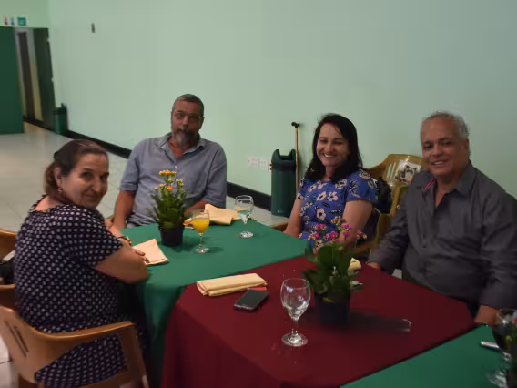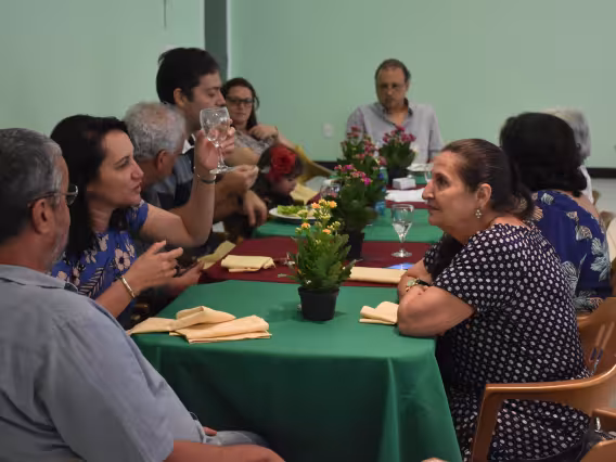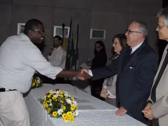 Professora Daniela Vargas parabeniza o professor Marco Antônio Grivet pela homenagem recebida.