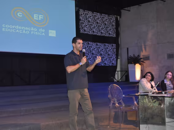 A Coordenação de Educação Física e Esportes da vice-reitoria para assuntos comunitários faz sua apresentação e recebe os calouros de graduação de 2011.2 no 'Meu Primeiro Dia na PUC'