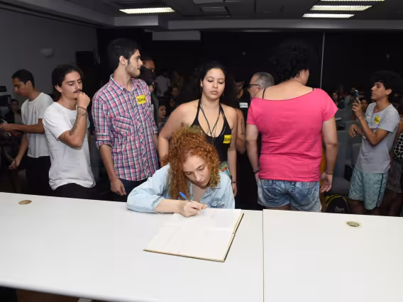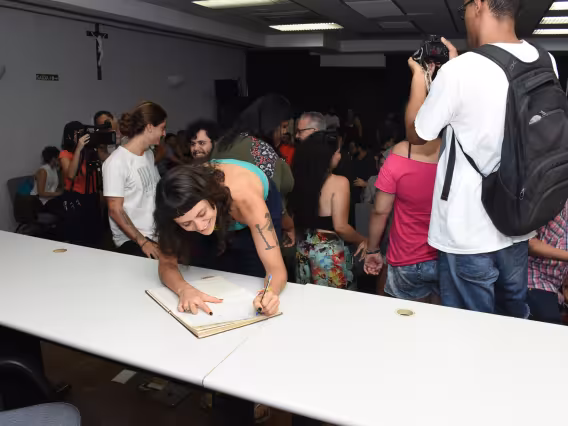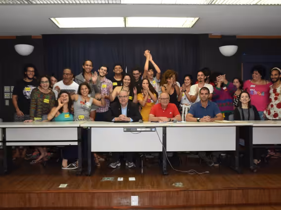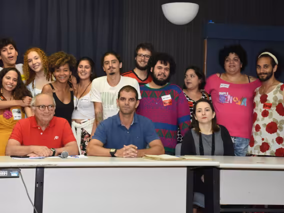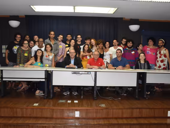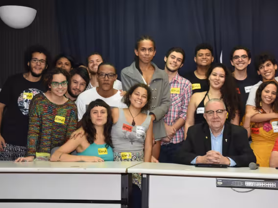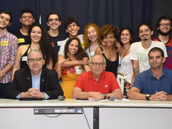 Integrantes das chapas eleitas para os CAs e o DCE posam com o Reitor e o Vice-Reitor Comunitário.