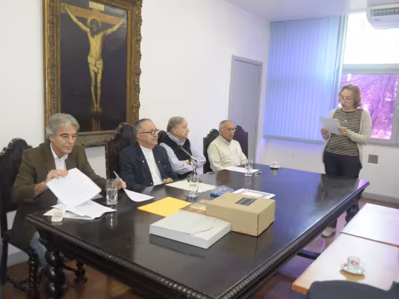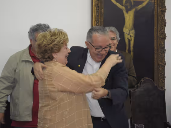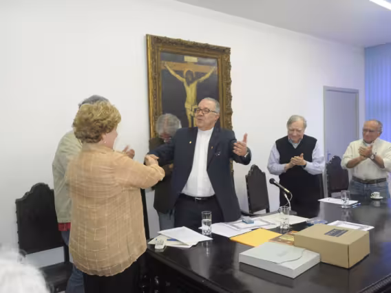 O Reitor Pe. Josafá S.J. entrega o diploma de Professor Emérito à profa. Margarida de Souza Neves (HIS).