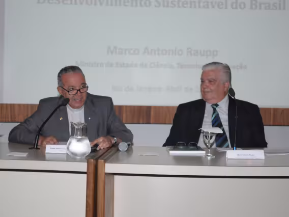 Confraternização após o lançamento do site. O Reitor Pe. Hortal S.J. mostra uma caricatura sua em um Palm Pilot.