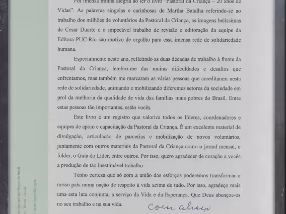 Fac-símile de carta do Grão-Chanceler da PUC-Rio, Cardeal Dom Jaime de Barros Câmara, conclamando à participação na Campanha Financeira da Universidade.