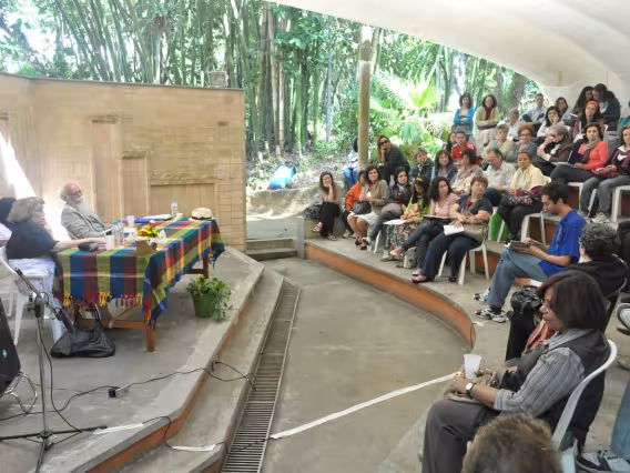 Benjamin, Beija Eu', encontro de reflexão sobre a obra de Walter Benjamin, com a participação da profa. Eliana Yunes, do Departamento de Letras, e os contadores de história Francisco Gregório Filho e Benita Prieto. Fez parte do evento Operação Leitura.