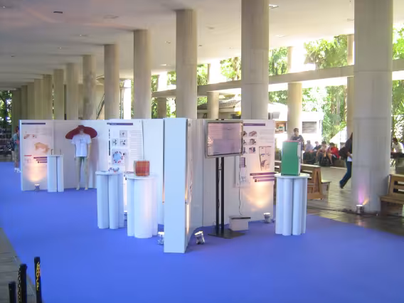 Pessoas acompanham o discurso do Reitor no saguão do Auditório Del Castilho, no RDC.