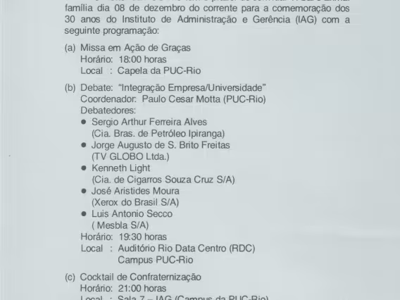 Cronograma das atividades a serem realizadas nas comemorações dos 30 anos do IAG.