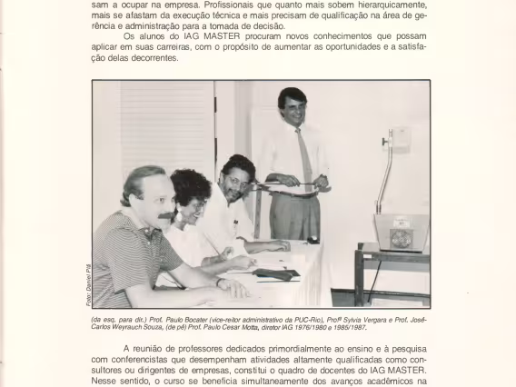 Programa IAG Master. Foto dos professores Paulo Fiúza Bocater, Sylvia Vergara, José Carlos Weyrauch Souza e Paulo César Motta.