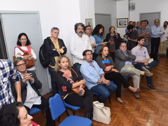 Plateia presente na mesa de abertura do Seminário Interno do Centro de Ciências Sociais que contou com a participação do Grão-Chanceler da PUC-Rio, cardeal dom Eugênio de Araújo Sales, e o reitor pe. João Augusto Anchieta Amazonas Mac Dowell S.J. O evento, coordenado pela Vice-reitoria de Desenvolvimento, debateu a função da pesquisa, as fontes de financiamento, a relação ensino-pesquisa e promoveu a troca de informações e a integração entre os diretores e os professores dos departamentos constitutivos do CCS para a preparação de um Plano Diretor da PUC-Rio. O seminário foi realizado entre os dias 05 e 06 de setembro de 1979 no Centro de Estudos e Formação do Sumaré.