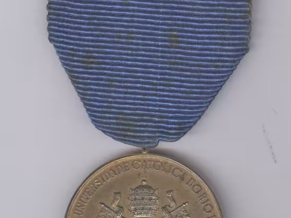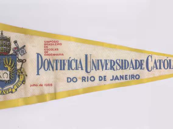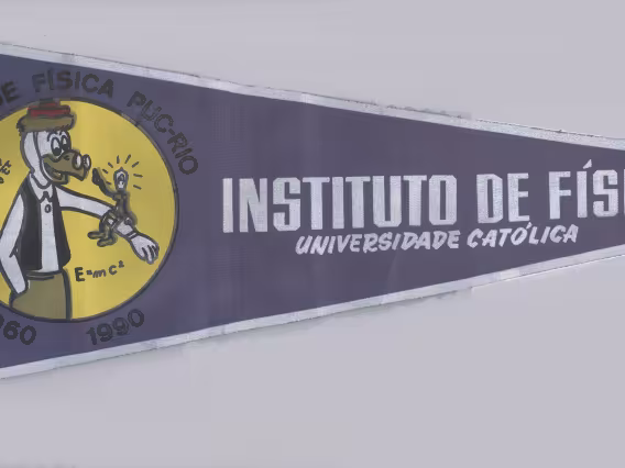 Flâmula comemorativa aos 30 anos do Instituto de Física - 1960-1990. Imagem do prof. Pardal com o Lampadinha.