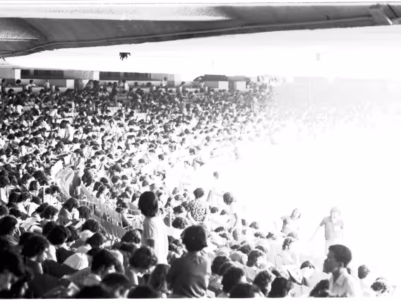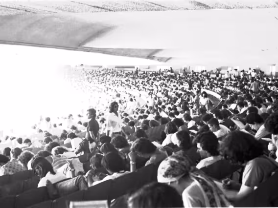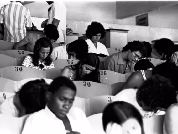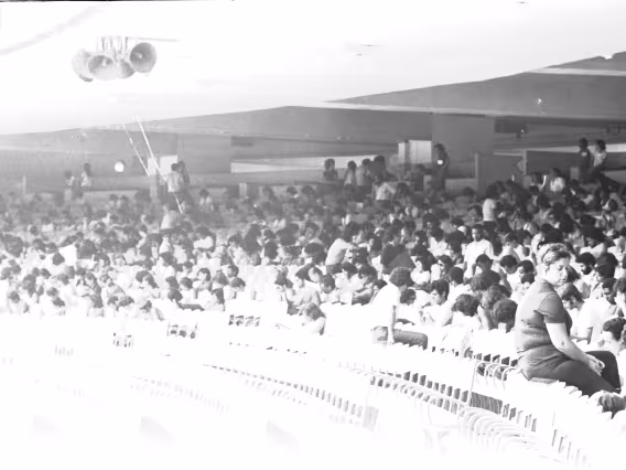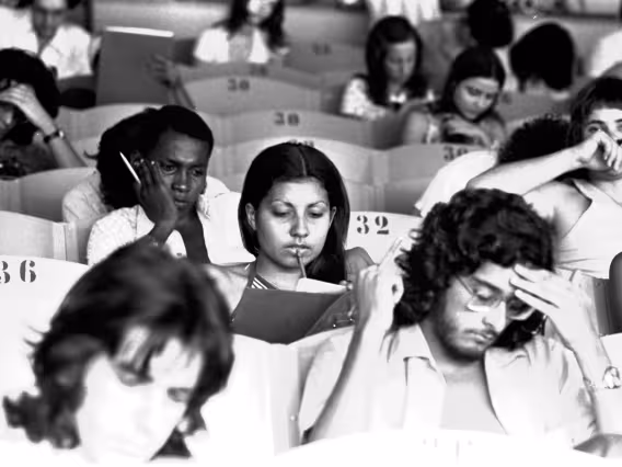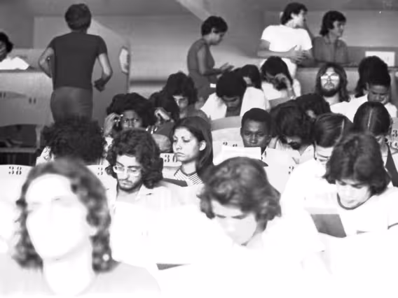 Alunos na arquibancada por ocasião da prova de vestibular.
