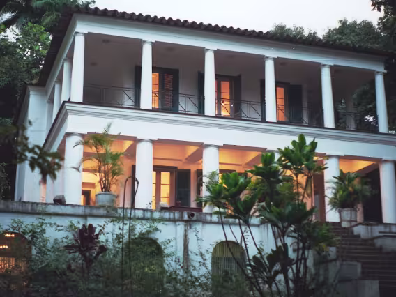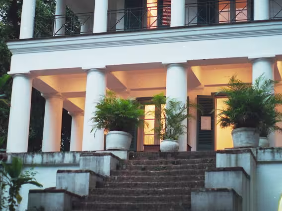 Excursão de alunos (homens e mulheres) dos cursos de Geografia e História da Faculdade de Filosofia em viagem a Minas Gerais. Em Belo Horizonte, em frente à igreja da Pampulha.