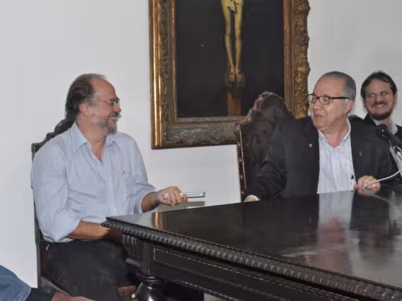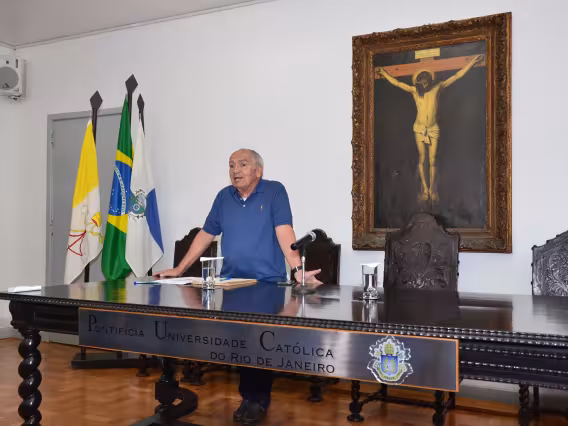 O professor Augusto Sampaio na cerimônia de posse dos alunos eleitos para os diretórios estudantis em 2020.