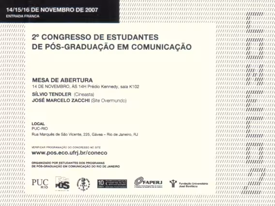Programação do IV Congresso Interno da PUC-Rio, realizado pela ADPUC e pelo DCE. Página 1. Apresentação das atividades do Congresso e chamada à participação de todos os Departamentos.