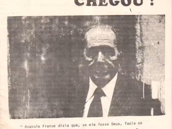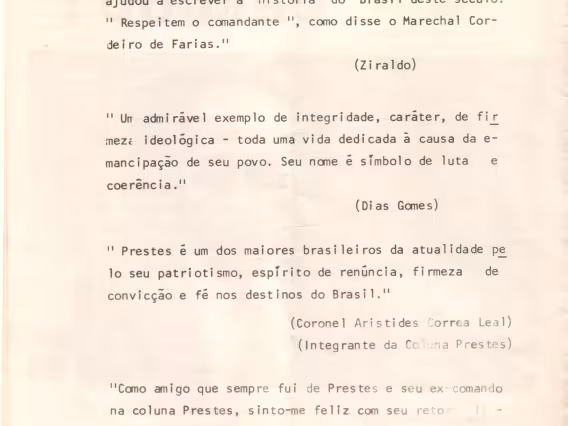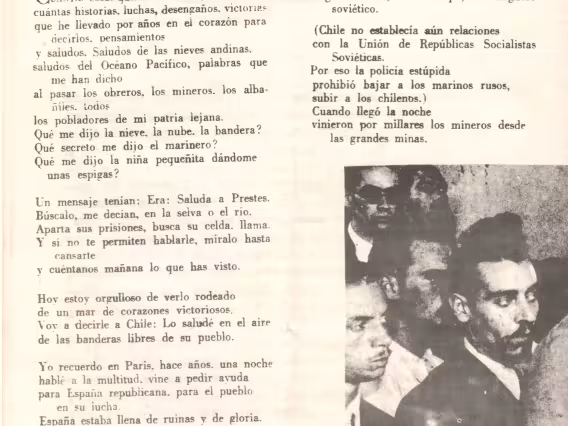 Poesia declamada por Pablo Neruda em comício no Pacaembu em 1945. Panfleto sobre Luiz Carlos Prestes, possivelmente distribuído após a volta de Prestes ao Brasil, no final de 1979.