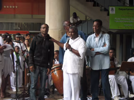 Evento nos pilotis com o grupo Raízes Serranas, do Morro da Serrinha. Aula Recital de Jongo e Samba.