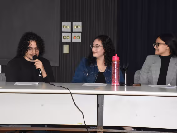 Palestrantes do painel 2: Gênero em perspectiva: experiências de gênero no cenário internacional. O painel reuniu pesquisadoras e ativistas que lidam com diferentes questões de gênero. Foi discutido de que forma a questão de gênero afeta uma gama de conflitos internacionais e como podem ser articuladas diferentes interpretações a cerca da experiência de gênero. A mediação foi da professora Paula Sandrin (IRI).