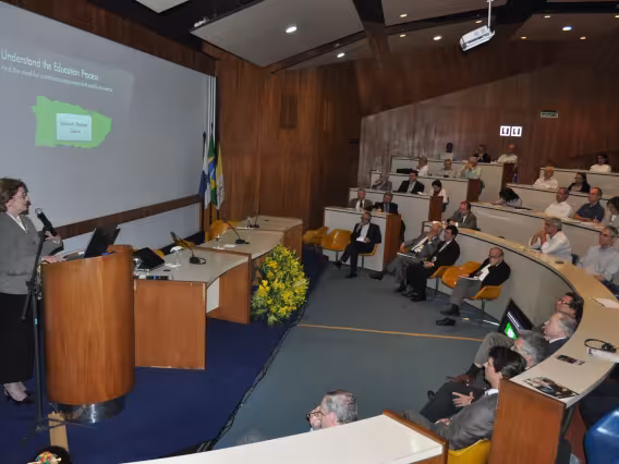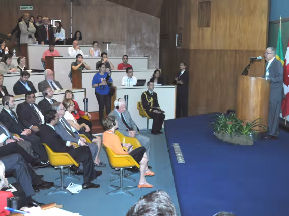 Professor Silva Mello recebe os cumprimentos dos convidados.