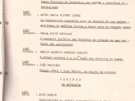 Boletim número 13 elaborado pelo Serviço de Estatística com a relação das dissertações de Mestrado e teses de Doutorado defendidas na PUC-Rio entre 1964 a 1969. A publicação está incompleta e vai até a página 10.