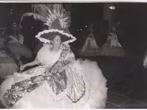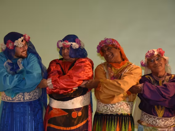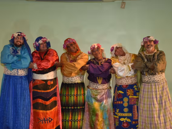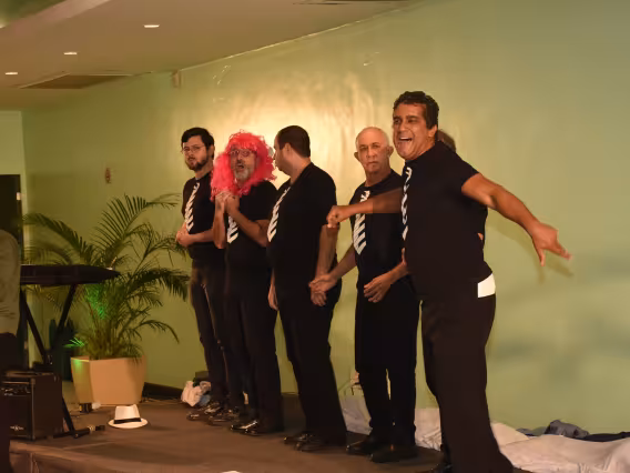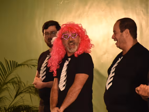 Integrantes do coral Os Men The Sá fantasiados durante a apresentação.