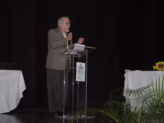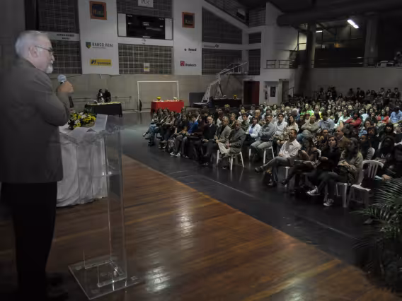 Professores, alunos e convidados na cerimônia de encerramento do XX Seminário de Iniciação Científica da PUC-Rio.