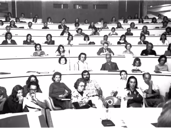Código exclusivo ls0011_006 Coleção II Encontro Nacional de Professores de Literatura Data de criação 01/08/1975 Natureza do documento imagem Tipo de documento negativo PB Descrição Plateia do Seminário.