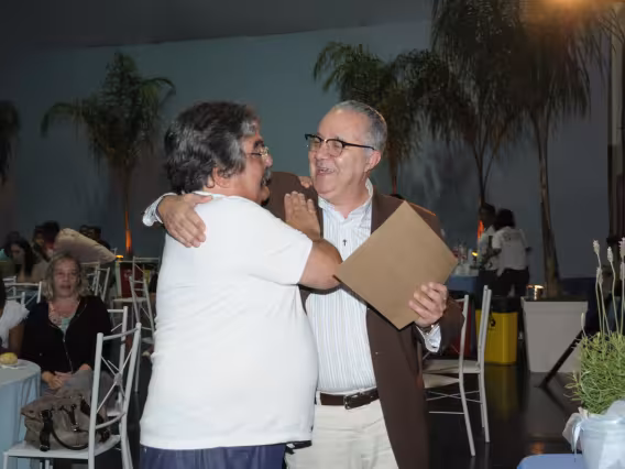 O Reitor Pe. Josafá S.J. parabeniza o professor José Carlos Souza Rodrigues pela homenagem recebida.