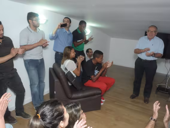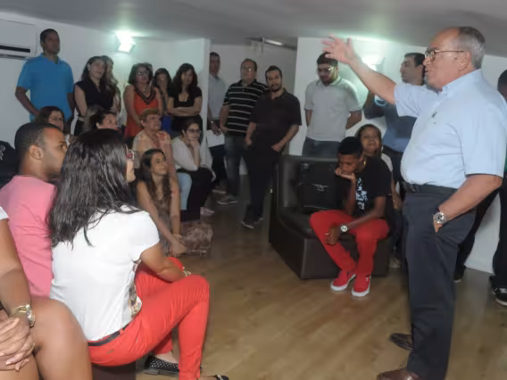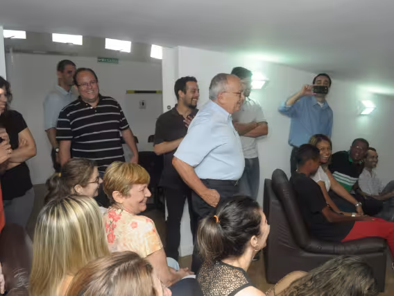 Professor Augusto Sampaio recebe salva de palmas após discurso.