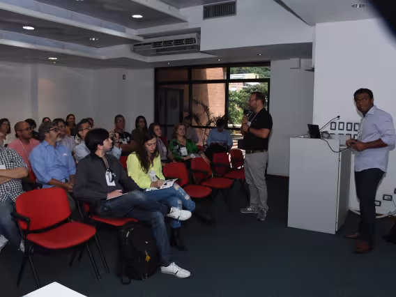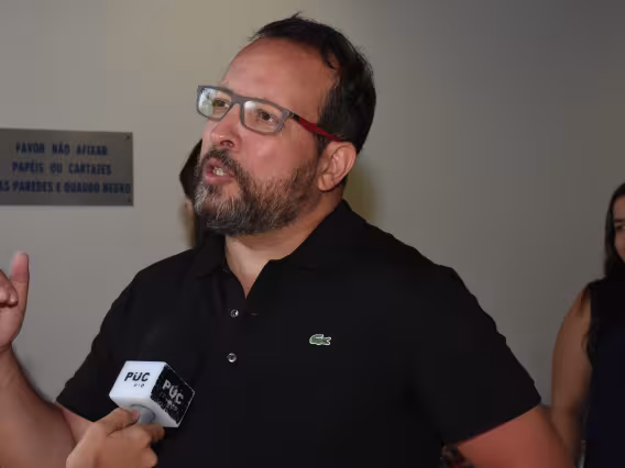 Apresentação do coordenador de Pós-Graduação em Implantodontia do Instituto de Odontologia da Pontifícia Universidade Católica (IOPUC), prof. Luciano Santos Oliveira, durante o evento.