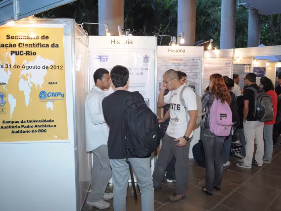 Bolsistas de iniciação científica do Departamento de História durante as apresentações de posters sobre suas pesquisas.