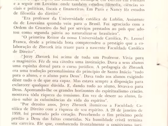 Matéria do Jornal da PUC com José Paulo Moreira da Fonseca, primeiro aluno matriculado em 1941 nas Faculdades Católicas. Ingressou na Faculdade de Direito.