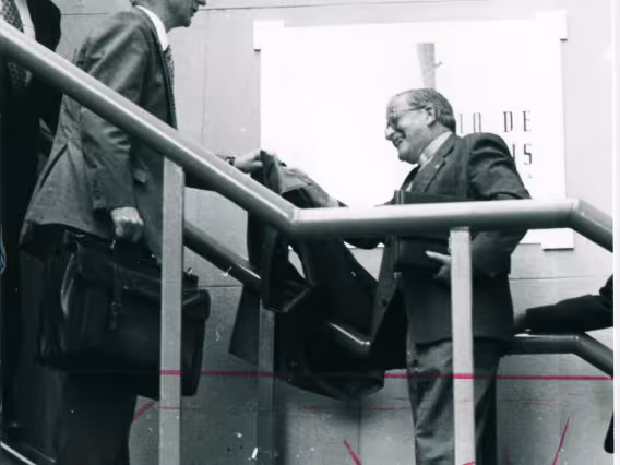 O Reitor Prof. Pe. Jesús Hortal S.J. descerra a placa de reinauguração do Laboratório de Métodos Formais com a presença do Vice- Presidente Senior da Siemens, prof. Claus Weyrich, e do coordenador do Laboratório prof. Armando Martín Haeberer.