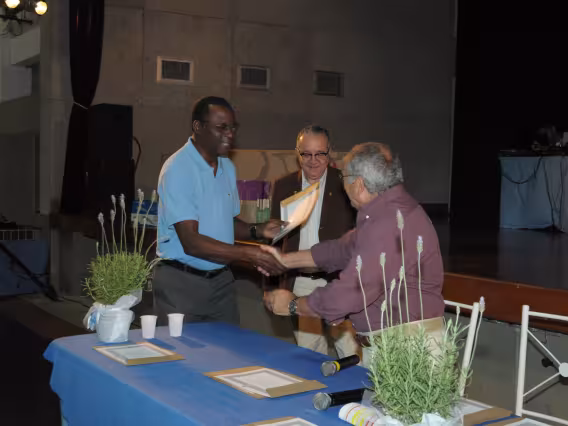 Funcionário Isnarde Antonio Ernesto (ELE) em seu ambiente de trabalho.
