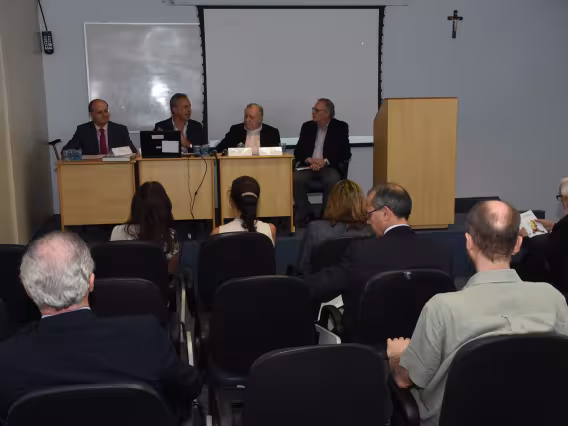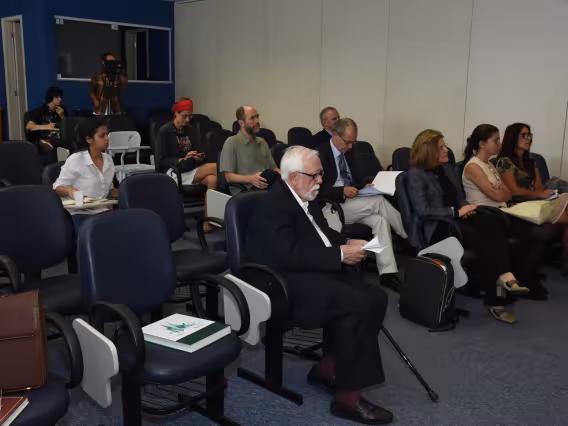 Participantes da homenagem aos ex-professores e ex-alunos das turmas de 1941 e 1942 das Faculdades Católicas no âmbito das comemorações dos cinquenta anos da PUC-Rio.