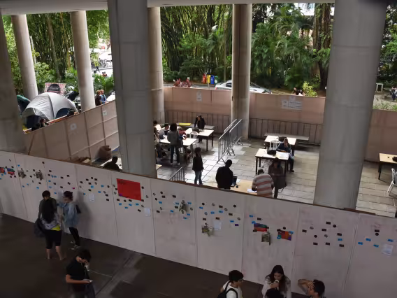 Área cercada para a realização das eleições ao lado das barracas da ocupação montada pelos alunos contrários à PEC 241.
