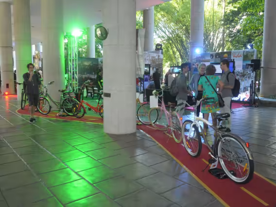 Matéria do Jornal da PUC intitulada "Ciclistas deixam preguiça de lado para driblar trânsito" com alunos que utilizam a bicicleta para vir para PUC-Rio. Na foto, a aluna Daniela Lima do sétimo período de Jornalismo.