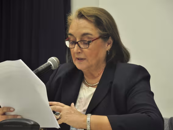 A professora Maria Clara Bingemer do Departamento de Teologia em palestra sobre religião e violência.