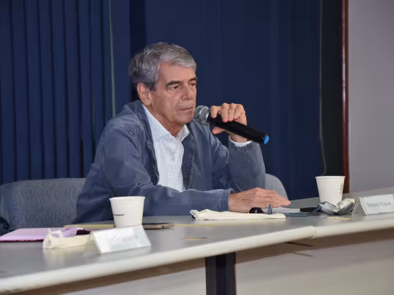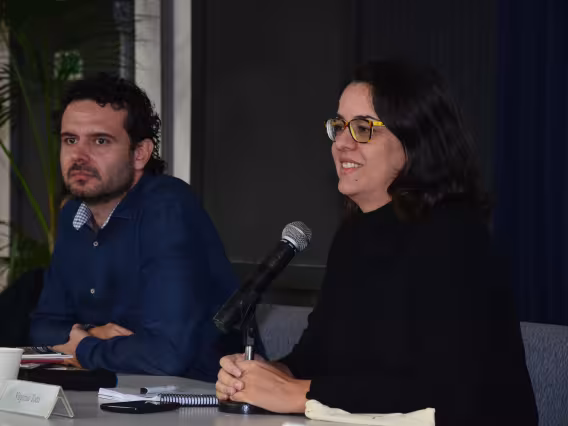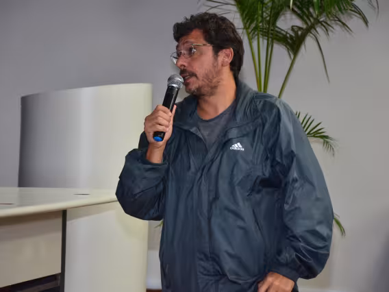 Da esquerda para a direita: Raphaela Lopes, do Laboratório de Direitos Humanos da UFRJ e advogada da ONG Justiça Global; O palestrante, Luiz Felipe Lacerda, da UNICAP e do Observatório Nacional de Justiça Socioambiental Luciano Mendes de Almeida - OLMA; Virgínia Totti, do Departamento de Direito PUC-Rio e NIMA PUC-Rio, como moderadora; Haroldo de Souza, da Faculdade de Educação do Campo da Universidade Federal do Sul e Sudeste do Pará e Fernando Walcacer do Departamento de Direito PUC-Rio e do NIMA-Jur, e da Coordenação de Direito Ambiental no NIMA PUC-Rio na palestra sobre territórios coletivos e direitos humanos na Amazônia.