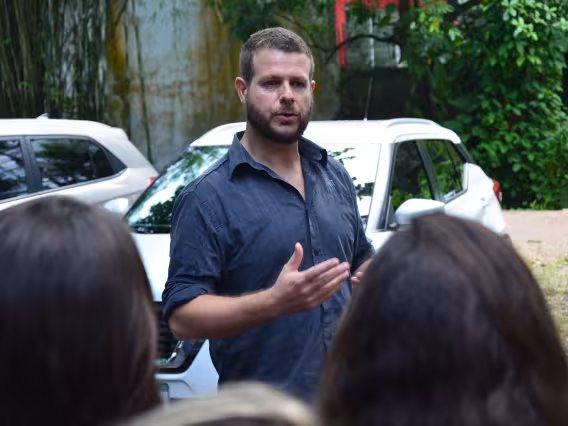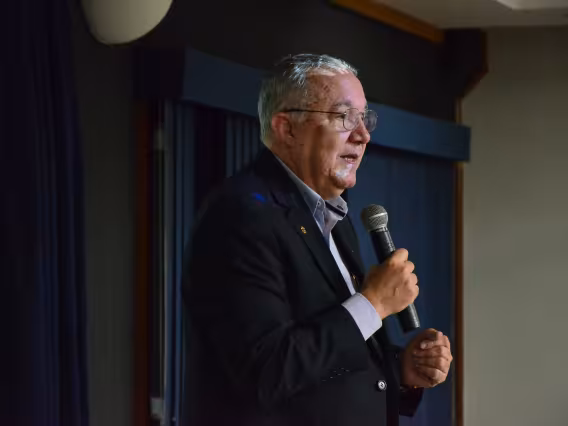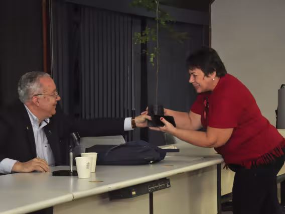 O reitor da faculdade Padre Josafá Siqueira na Abertura da XXV Semana do Meio Ambiente, recebendo uma muda de planta.