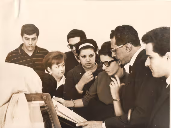 Código exclusivo cg0077_073 Coleção Acervo do Prof. Paulo Novaes - Vice-reitoria de Desenvolvimento - parte 4 Data de criação 01/01/1966 Natureza do documento imagem Tipo de documento fotografia PB Descrição Alunos em Laboratório.